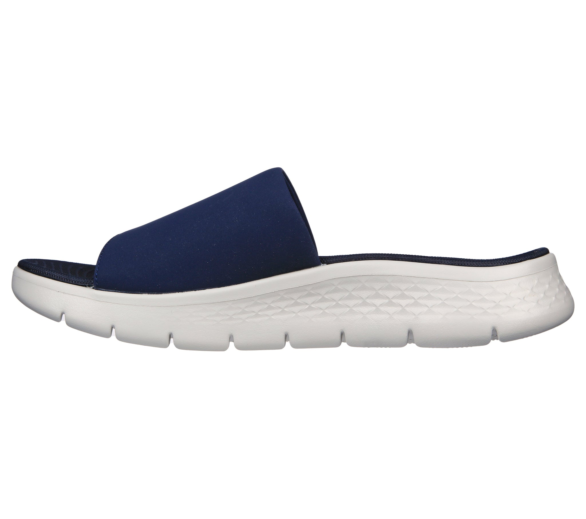 Choose the easy life in laid back style wearing Skechers GO WALK Flex™ Sandal - Omura. This casual comfort slide features a synthetic upper with a contoured Goga Mat® footbed and lightweight ULTRA GO® cushioning.