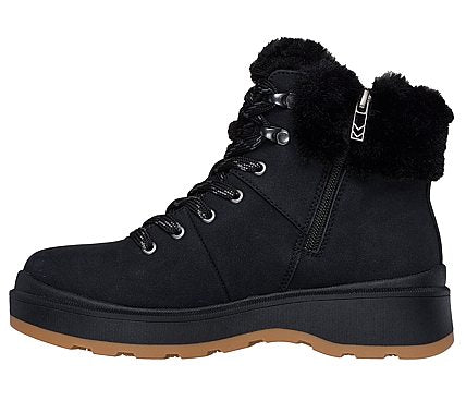 Restez au chaud et confortable cette saison à Skechers Park City. Cette botte de randonnée à lacets est dotée d’une tige en daim synthétique avec une bordure et une doublure en fausse fourrure, d’une semelle intérieure en mousse™ à mémoire de forme Skechers et d’une semelle extérieure antidérapante.